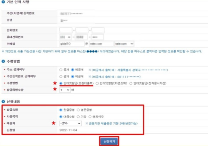 - 정보입력: 필요한 기본정보 확인 및 입력