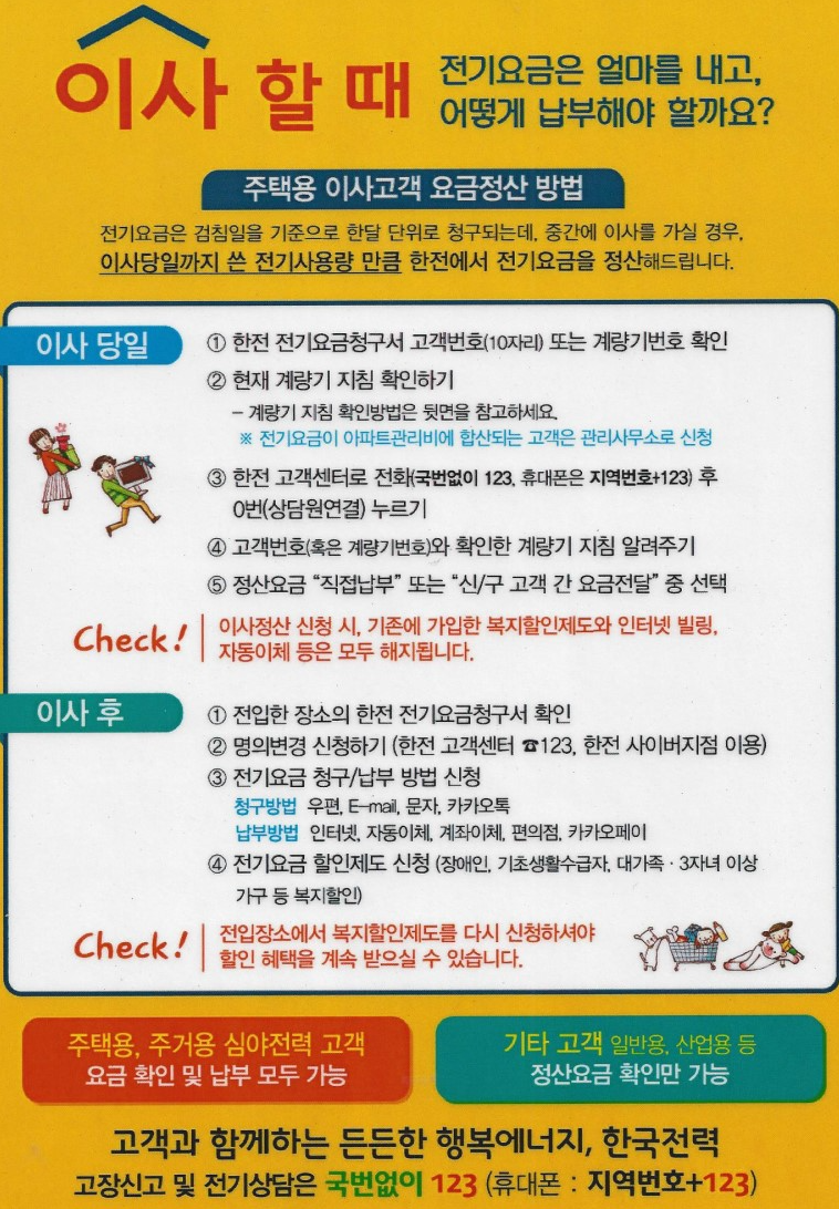- 전화 신청: 한전 고객센터 (123) 통해 신청