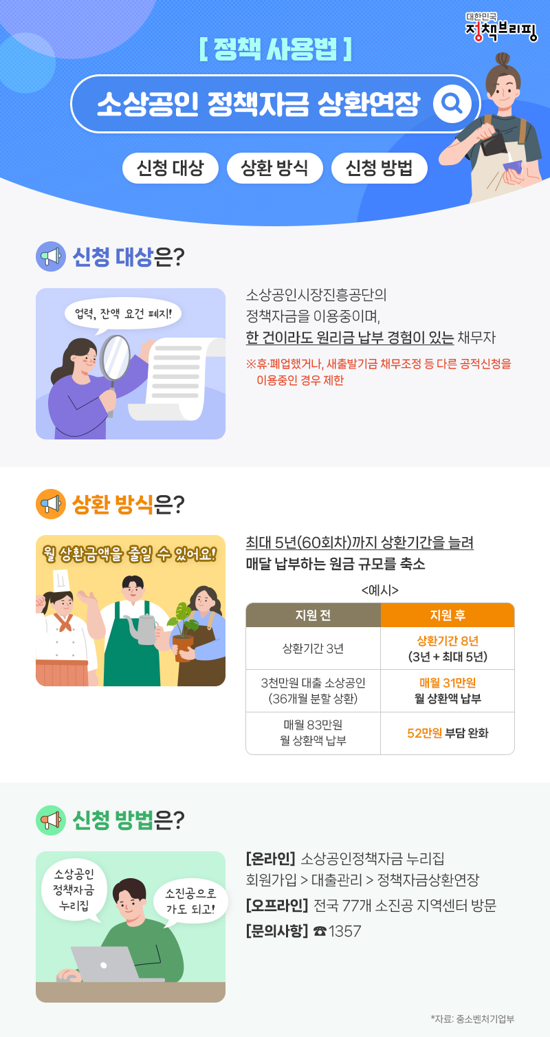 - 상환조건: 거치기간 최대 2년, 상환기간 최대 5년